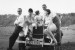 Diese Bild zeigt, wie eine Kapelle 1962 alle Musiker und Instrumente in einem Käfer transportierte.
